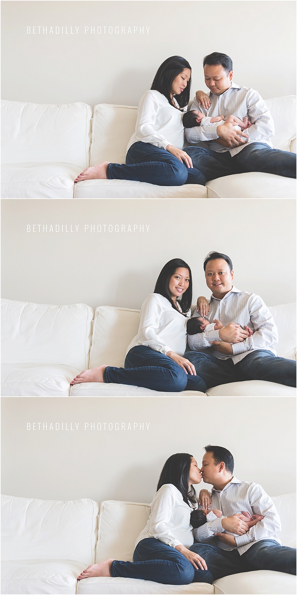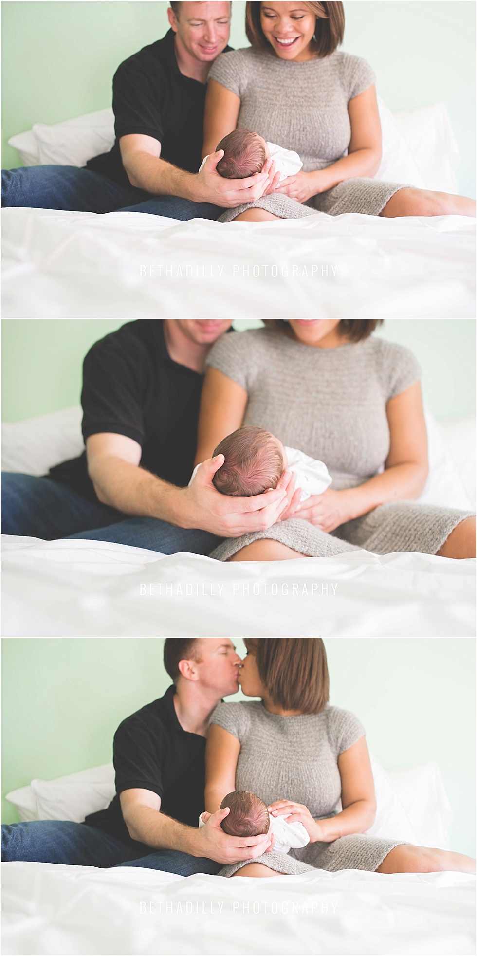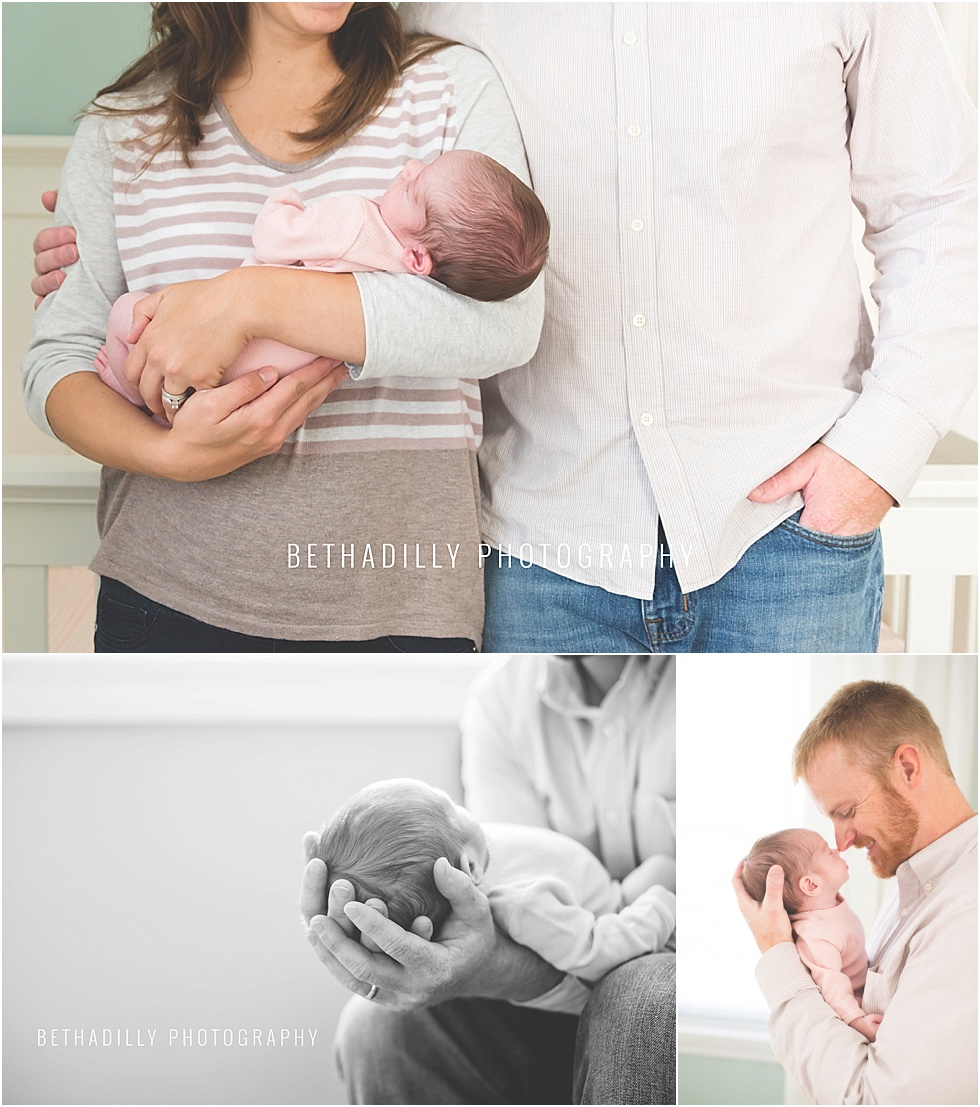 i cannot say enough wonderful things about this brand new family of three, i simply adore them. from the moment i arrived at their home to take their first family portraits, they were full of smiles and completely blissful. and having a new baby girl in their arms was the reason for their heartfelt smiles. they simply adore everything about her, from her sweet little toes to the occasional smile she gives them. just watching them all together was heartwarming and i could tell that their happy moments as a new family were just beginning.