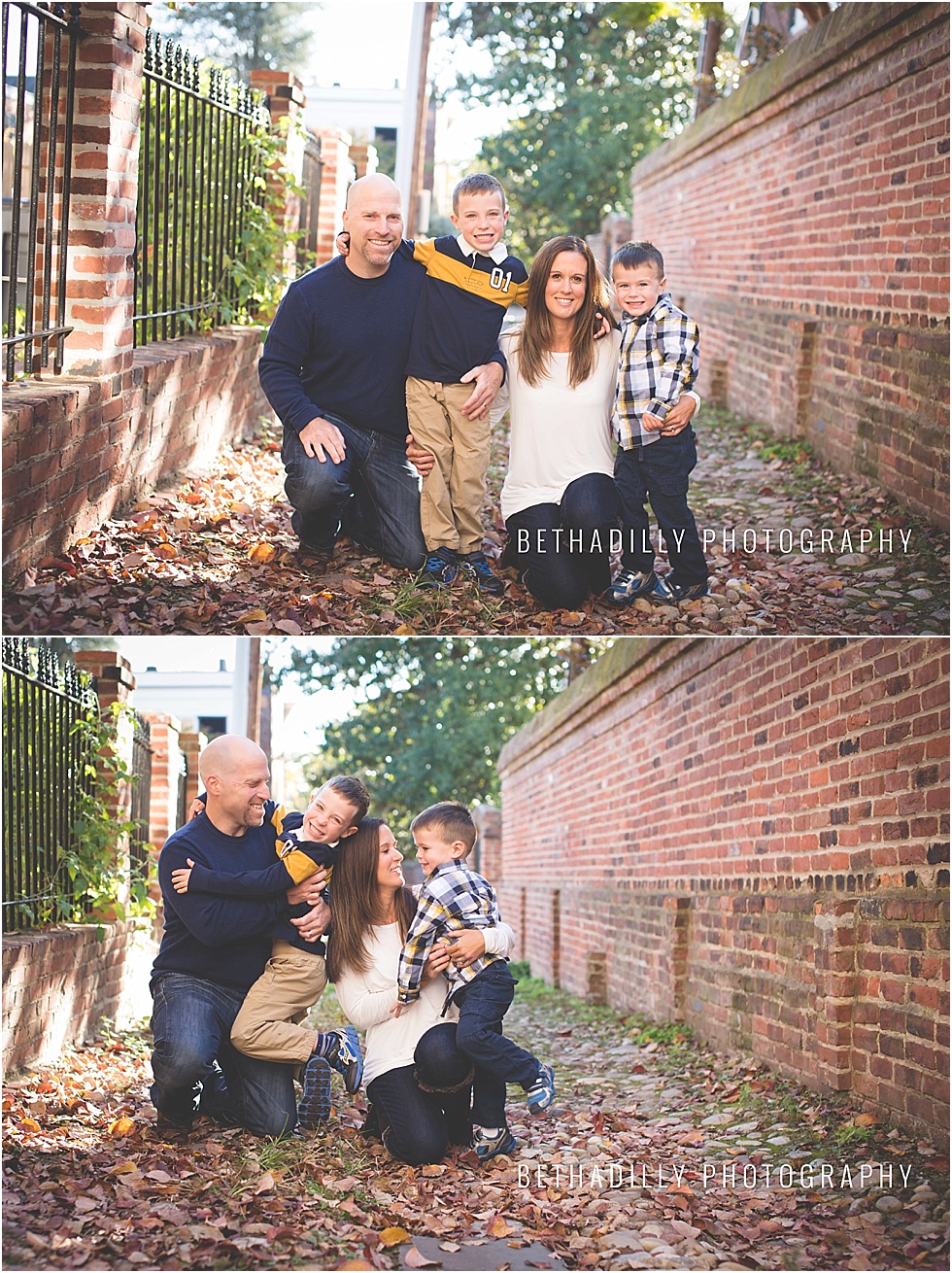 this sweet family of four just radiates fun and happiness. and because they naturally have so much fun together, they were so easy to photograph! between chatting with these sweet boys and walking around the town, i was simply able to just sit back and capture them having fun together. even though the chilly autumn weather has arrived, these boys had so much fun energy that they barely noticed. between being cuddled and tickled by their parents, it is obvious that these two little brothers are simply adored.