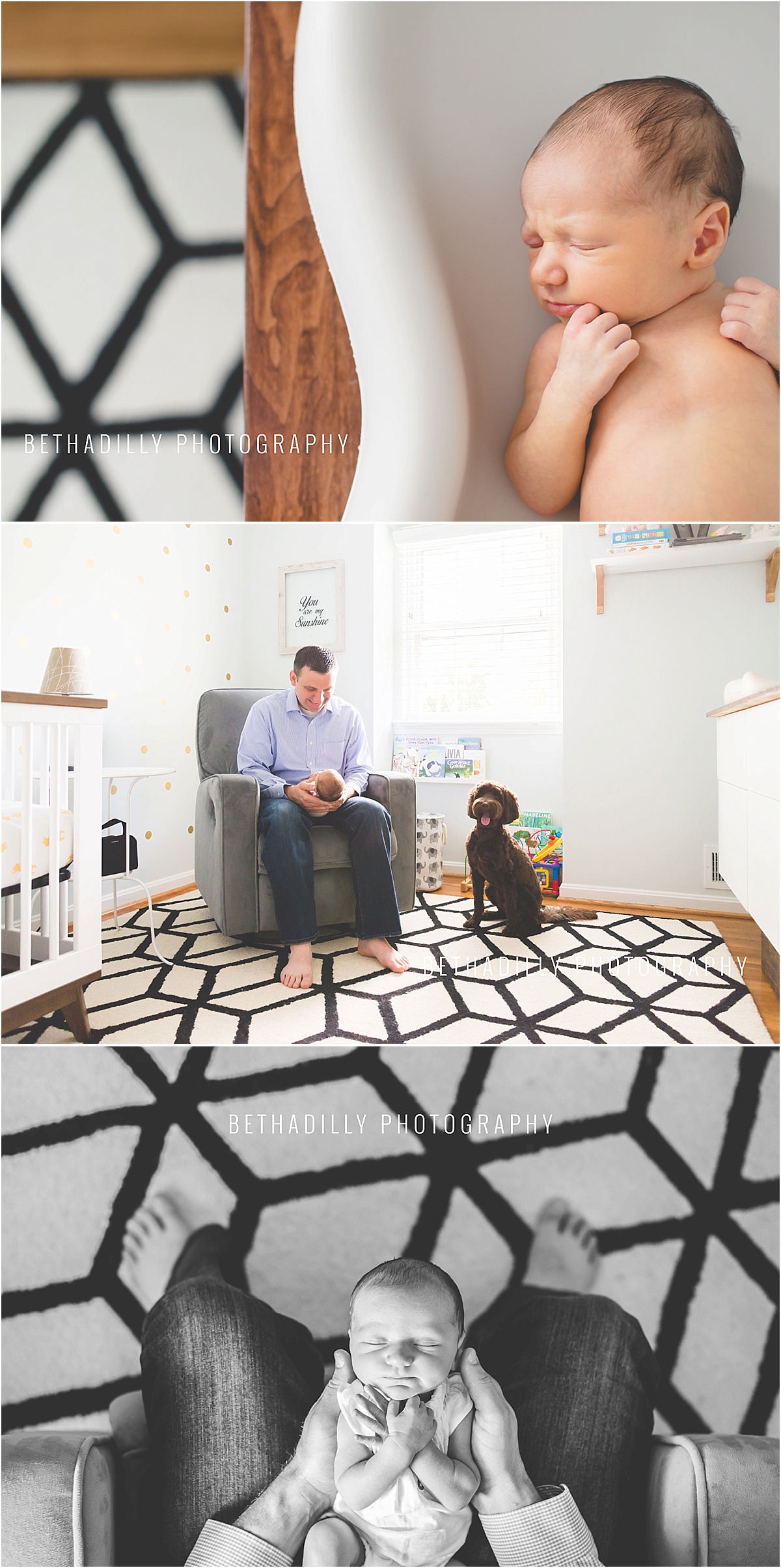 with a seven day old little baby and a one year old puppy, these two parents have quite the busy household. but life couldn’t be any more perfect. in fact, this little sweet girl didn’t even make one little noise during our entire session. she was perfect for her very first photo shoot and just adored being cuddled and kissed by her brand new mommy and daddy, with the occasional curious glance from her puppy brother. between a perfectly sleeping newborn, a charming pup, and a gorgeous nursery to photograph in…i was a little spoiled as a photographer.